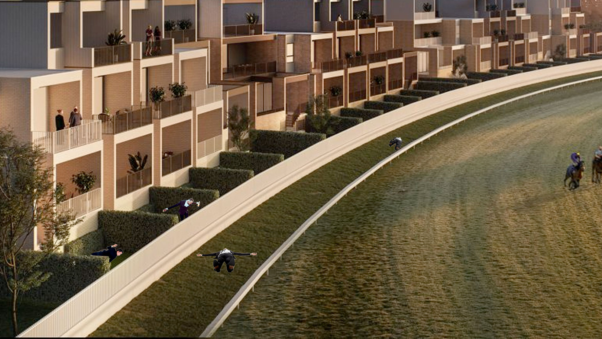 While residents of the new housing estate will technically own their properties, there are some concessions that come with living on the former grounds of the Sport of Kings (or at the very least, the Sport of Sales Reps Hosting Clients in a Marquee While Having Awful Chat).